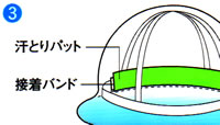 ヘルメットの裏側に、汗取りパットをセットするだけで、ひたいからの汗をカットします。